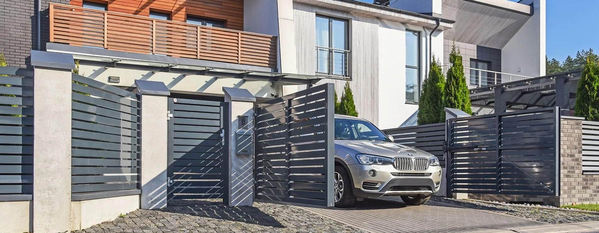 Распашные ворота требуют наличие запаса места на въезде или дворовой территории, равного радиусу движения створок ворот.